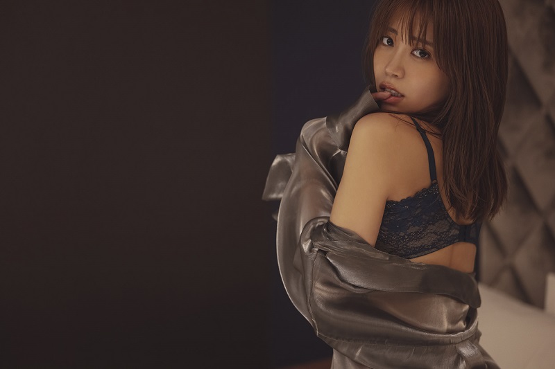 一方の『好きかも。』は、一転してオトナの真由子編。ふだんのふわふわキャラからは想像できないようなドレス姿の幻想的なカットや、大胆な黒のランジェリー姿にも挑戦。セクシーなマシュマロボディは、息をのむ色っぽさを見せた作品となっている。