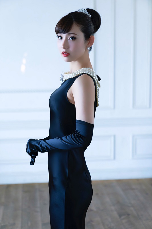 オードリー・ヘプバーンをイメージしたという今回のグラビア。「演技レッスンも事務所で受けさせていただいていて、名作と言われる映画をみたり勉強もがんばっています。そんな中で、撮影が決まり、まさかの往年のヒロイン、オードリー・ヘプバーンさんに変身なんて…と思いましたが、メイクさんもヘアメイクの研究をしてきてくれて、スタイリストさんもとても可愛い衣装に合わせて、小道具などもたくさん準備してくださって立派な和製オードリー・ヘプバーンが出来上がりました(笑)」と満足のいく出来となったようだ。特に「『ティファニーで朝食を』のワンシーンをイメージした撮影では顔の角度や手の位置までこだわったので、ぜひそこを見ていただきたいです!」とアピールした。