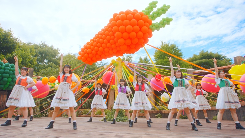 またメイキングでは、MV 撮影当日の裏側を公開。メイキングカメラに向かって満面の笑みを向けるメンバーたちの姿はもちろん、今回アコーディオンに挑戦する小林萌花さんの腕前と、それを見たメンバーとの絡みは必見。さらに、MV には入っていない、巨大なにんじんバルーンを「にんじん♪にんじん♪」と引っ張る12人の謎の掛け声も聞くことができるそうだ。