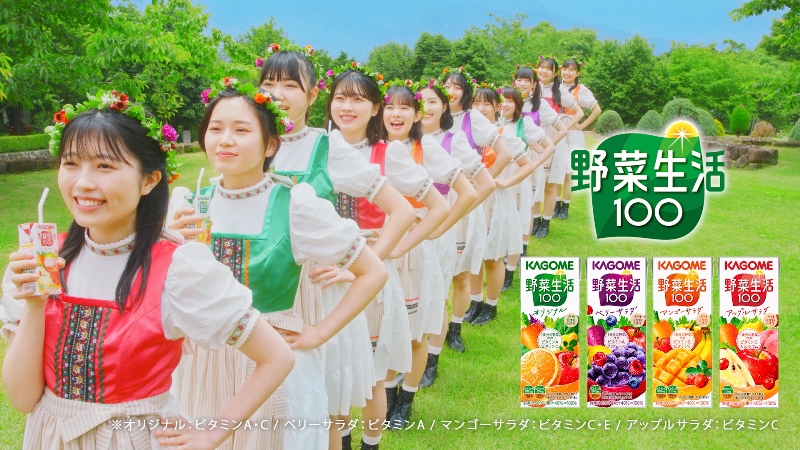 今回、「野菜生活100」のメイン 4 商品のカラーに合わせた衣装を着たメンバーたちは、自分の衣装と同じ色の商品を飲むことに。里吉うたのさんは「(オリジナル派だったけど)ベリーサラダ派になりそう!」と語り、メイキングのラストに入っているメンバーからのメッセージでは、高瀬さんから撮影の感想を聞かれた島倉りかさんの”衝撃の回答”も…⁉︎