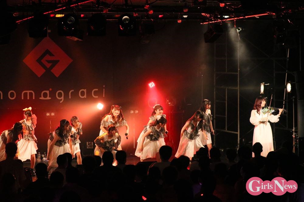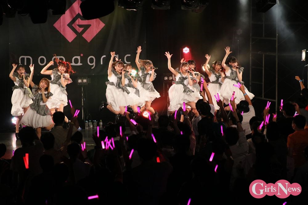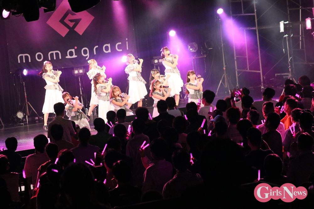 ライブでは、8月24日リリースの”3年ぶりの1stシングル”より、『BOY FRiEND』『アドベンチャっス!』、さらに新曲の『EverybodyJump』『爆裂カワイイ大戦争』といった新鮮な曲から、momograciとしては初披露となる桃色革命時代のキラーソング『満開REVOLUUTION』などの懐かしい曲、そして、バイオリン演奏とのコラボまで、多彩な内容で観客を楽しませた。トークでは、ライブに向けた練習がコロナ禍で大変だったことや、それそれのメンバーの初対面の印象の話題などで盛り上がった。