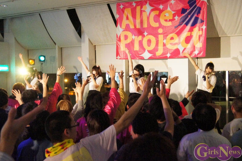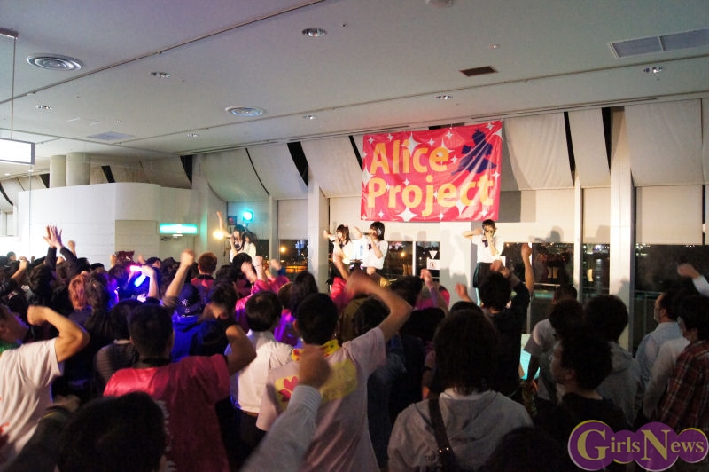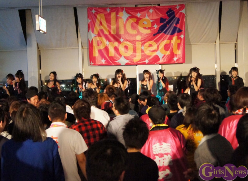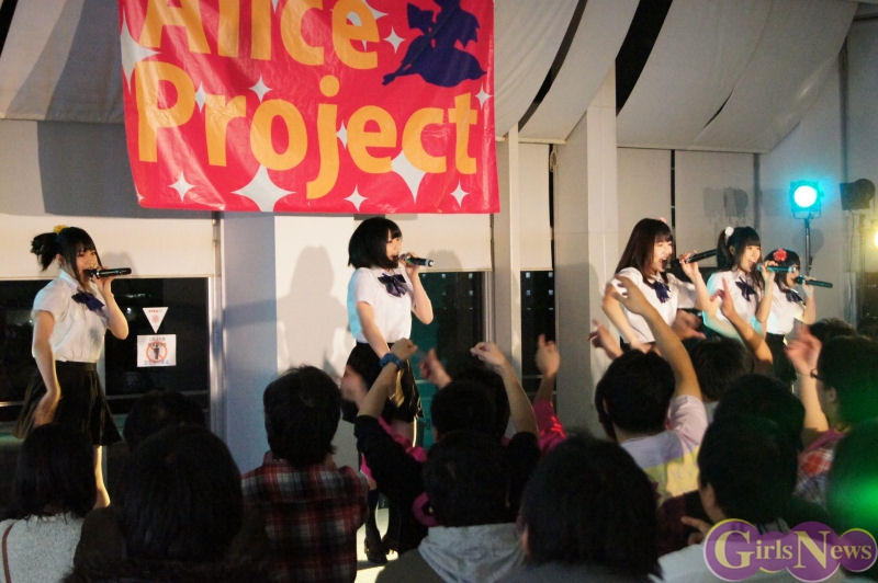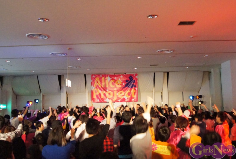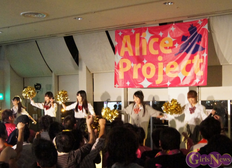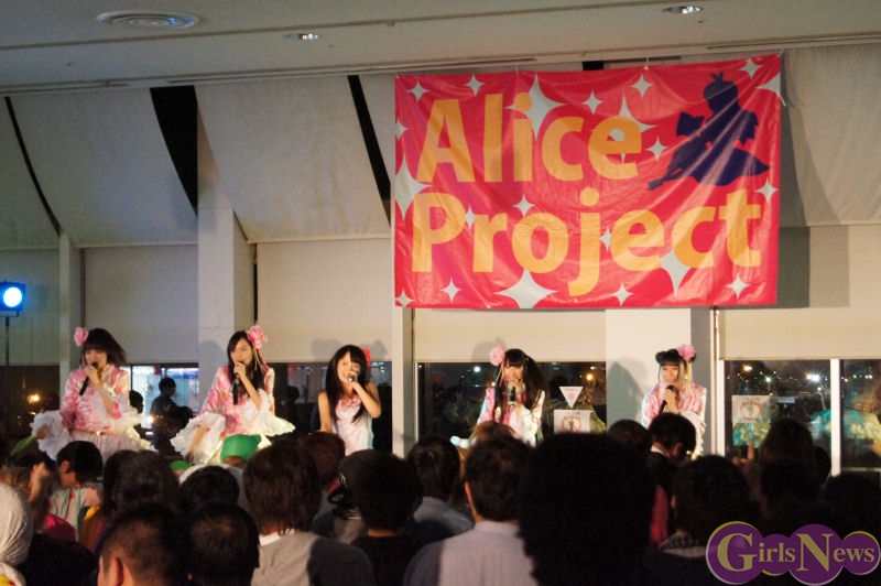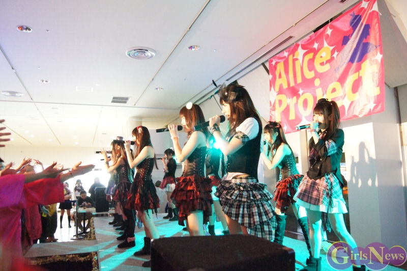 1月31日、アリスプロジェクトのアイドルユニット「アリス十番」「ぴゅあふる」「チェリーブロッサム」「Prism」、そして今回「かぶラカタブLOVE」でデビューする新ユニット「麻友美withほわいと☆milk」によるライブがお台場パレットタウン 東京レジャーランド特設ステージにて行われた。