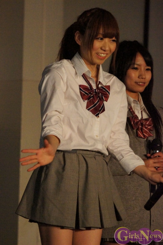 この日、夜の部では「ぴゅあふる」「チェリーブロッサム」「Prism」は、なんと制服衣装で登場。「チェリーブロッサム」「Prism」はキュートな制服。そして「ぴゅあふる」はセクシーなピンクのセーラー服姿にファン熱狂!ピンク大好きなぴゅあふるの藤崎麻美さんは「大好きなピンクに包まれて今日も幸せだっぴょーん!」と笑顔。