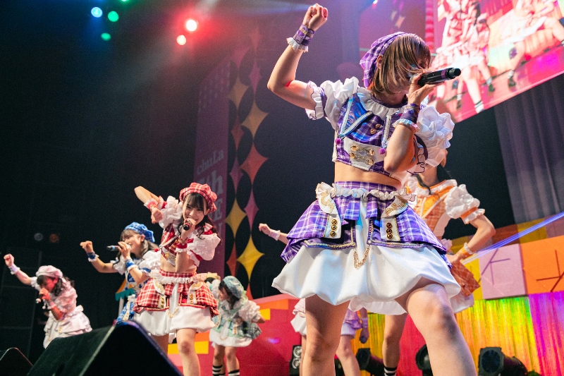 中盤ではメンバーが4人ずつ2つにわかれてのユニットで登場。1組目は桜木妃奈・蒼井聖南・北野ゆか・田中みうが“カワイイ系”の衣装に着替え、chuLaでは新鮮なミドルテンポの『オレンジ』を歌唱。可愛らしい振り付けにファンも自然に笑みがこぼれる。