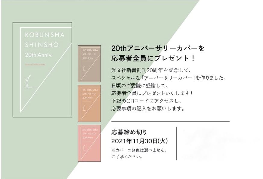 今回はフェアの50書目のうち、49書目までがこの帯デザインであるものの、1書目だけスペシャルな左巻きバージョンがあるという。また新書サイズのスペシャルなブックカバーを応募者全員にプレゼントするキャンペーンも実施。詳しくは帯の裏側のQRコードから特設ページにアクセスすることができる。