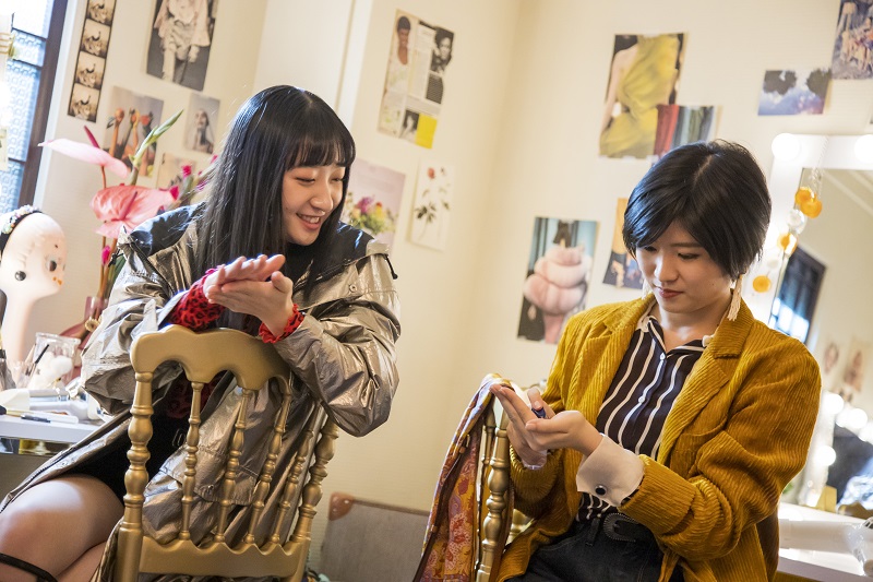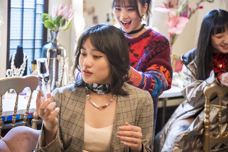 稲場「今回私だけがポニーテールというヘアスタイリングで、髪の毛の見せ方が難しいんじゃないかなと思っていたのですが、周りのみんながクールなキャラクターの方が多かったので、私はキュートに全振りでいこうと思い、役作りに入っていました!(笑)クロ―ゼットのシーンがあるのですが、服と服のあいだから”ひょっこり”と出てくるシーンも撮影させていただいたので、”キュート”な私をぜひ見て欲しいです」