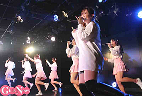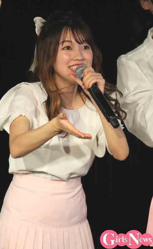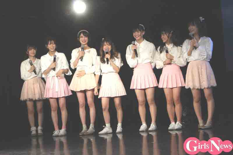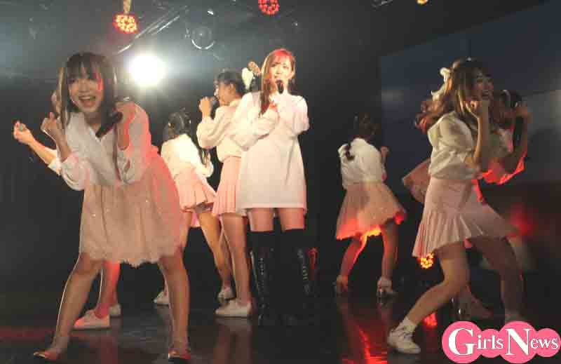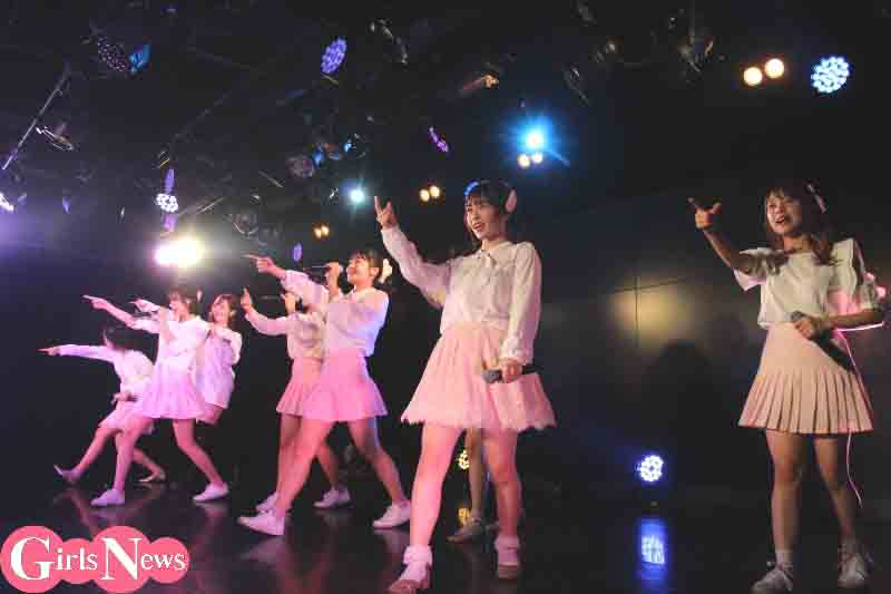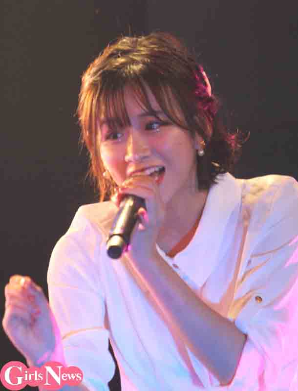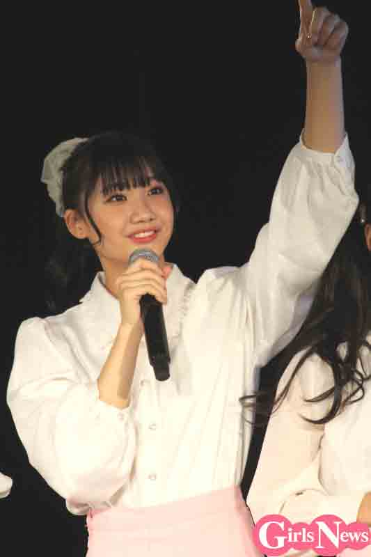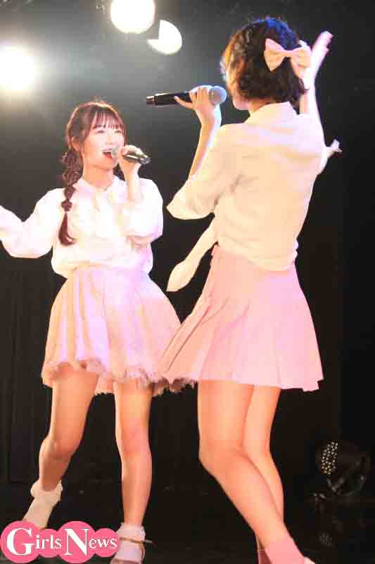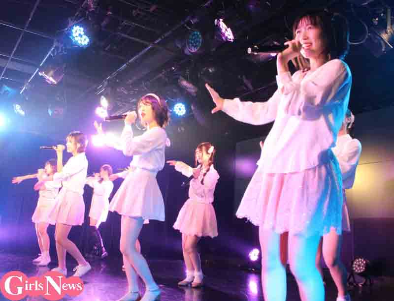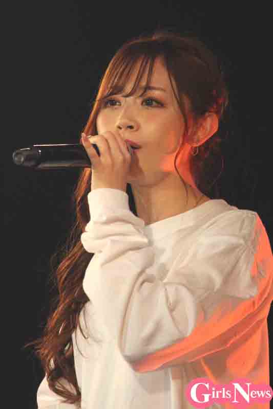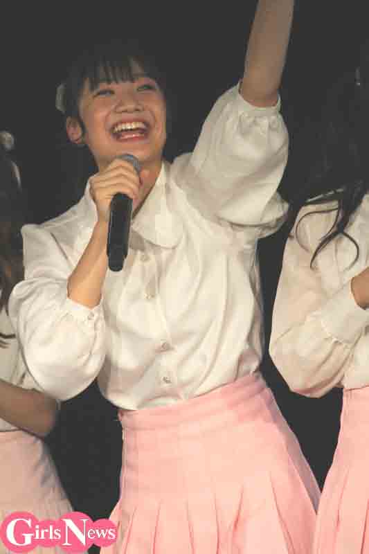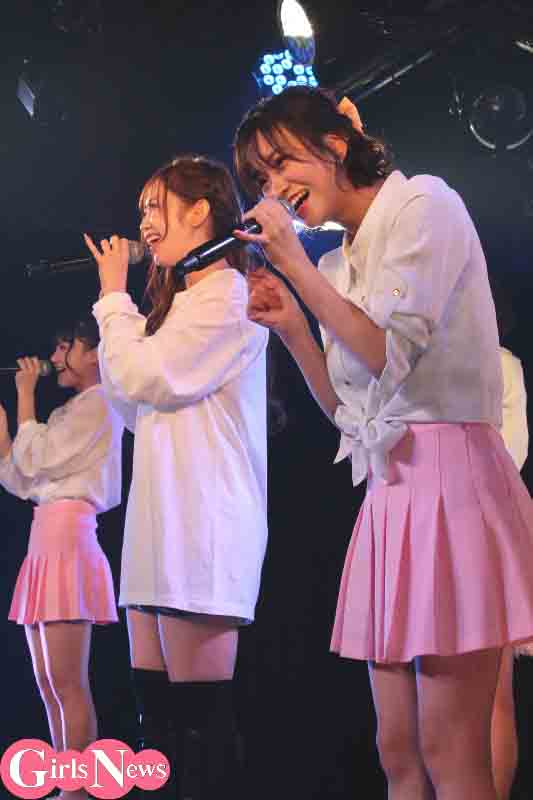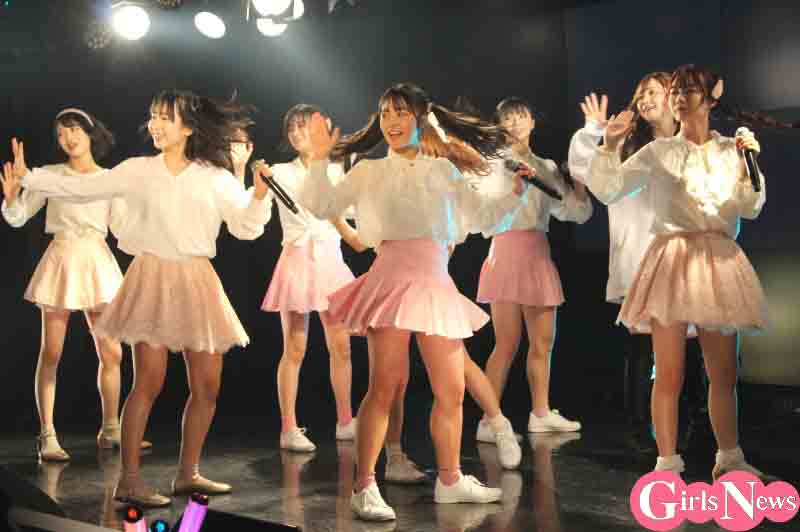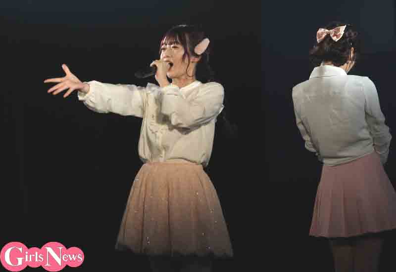 ユニット曲のブロックは、海月らなさんのソロ曲『ユメノドレミ』から。彼女の思いやキャラクターが詰め込まれた楽曲を元気に披露した。ここまでは最新曲『FUKUOKA。〜福を可するのだ♪〜』のカラフルな衣装でパフォーマンスしたメンバーたちだったが、ここから白のブラウス+さくら色のスカートといういでたちにお色直し。主役の新木さんは生誕ロングTシャツ姿で登場した。