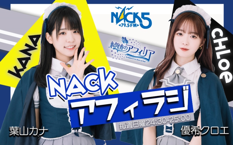 アイドルグループ「純情のアフィリア」から、1st写真集発売を控えた優希クロエさんと雑誌表紙、モデルなど活躍中の葉山カナさんがパーソナリティを務める「NACKアフィラジ」がFM NACK5にて2022年1月2日(日)からスタートする(毎週日曜24:30-25:00)。