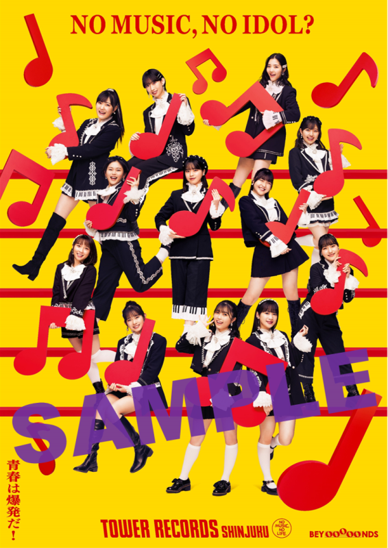 3月2日に約1年ぶりに3rdシングル『英雄~笑って!ショパン先輩~/ハムカツ黙示録』を発売するBEYOOOOONDS。タワーレコードは、これを記念して「NO MUSIC, NO IDOL?」コラボポスターとポストカードを制作。対象14店舖のいずれかで対象商品全6形態のうちいずれか1点を購入した人にはこのコラボヴィジュアルを使用したポスターを、タワーレコード オンラインで購入した人には同デザインのポストカードを予約者優先ならびに購入者先着でプレゼントされる。