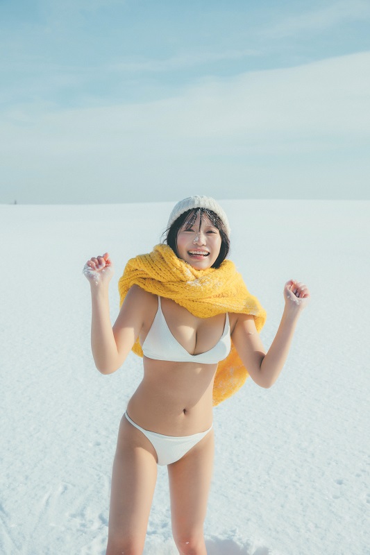 また北海道では、幻想的な景色の中に佇む姿を中心に、しっとりと落ち着いた旅をしている様子を撮影。特に一面真っ白な雪景色の中で純白の水着を着て撮影したシーンでは、凍える寒さの中での清々しくてインパクトのあるカットとなっている。1st写真集の撮影から2年。チャームポイントである可愛さ・あざとさ・アイドル性の高さに加え、グッと増した大人っぽさ・美しさを混じえ、大自然のなか解放的な姿を写し出した写真集が完成した。