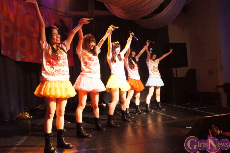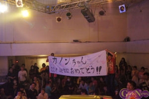 外は冷たい風が吹く中、Studio Cubeの中は常夏。熱気ムンムンの中 「Prism」「チェリーブロッサム」「麻 友美withほわいと☆milk」「トッピング☆ガールズ2.0」、そして「ぴゅあふる」が歌とダンスで森カノンさんの生誕祭を盛り上げた。