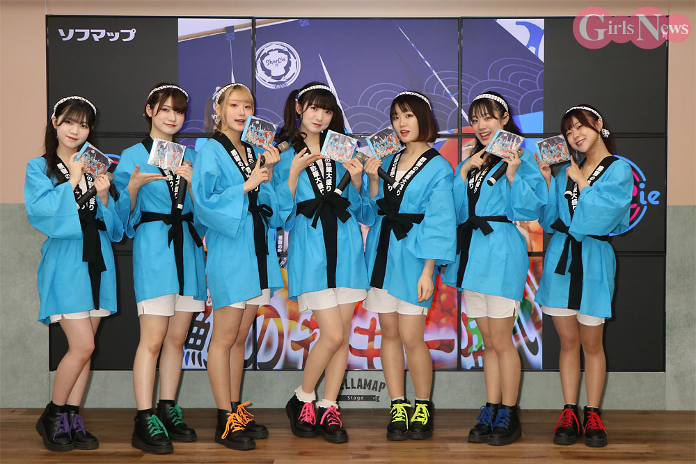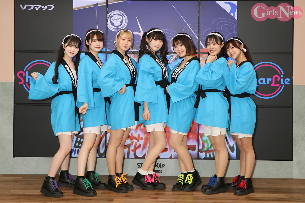 応募者2000人以上の中からオーディションを勝ち抜いた7人で結成されたアイドルグループ「SharLie(シャーリー)」が27日、新曲『薊の花も一盛り』のリリースイベントをソフマップAKIBAアミューズメント館にて開催した。