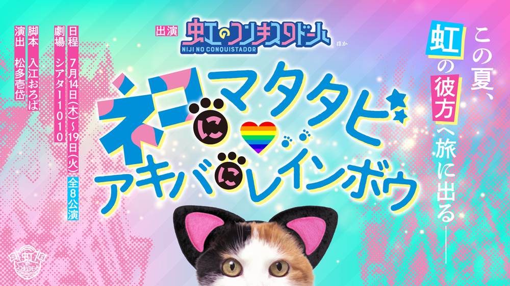 アイドルグループ「虹のコンキスタドール」が出演する舞台『「ネコにマタタビ、アキバにレインボウ」〜この夏、虹の彼方へ旅にでる〜』が、7月14日(木)〜19日(火)、東京・シアター1010にて上演されることが決定した。