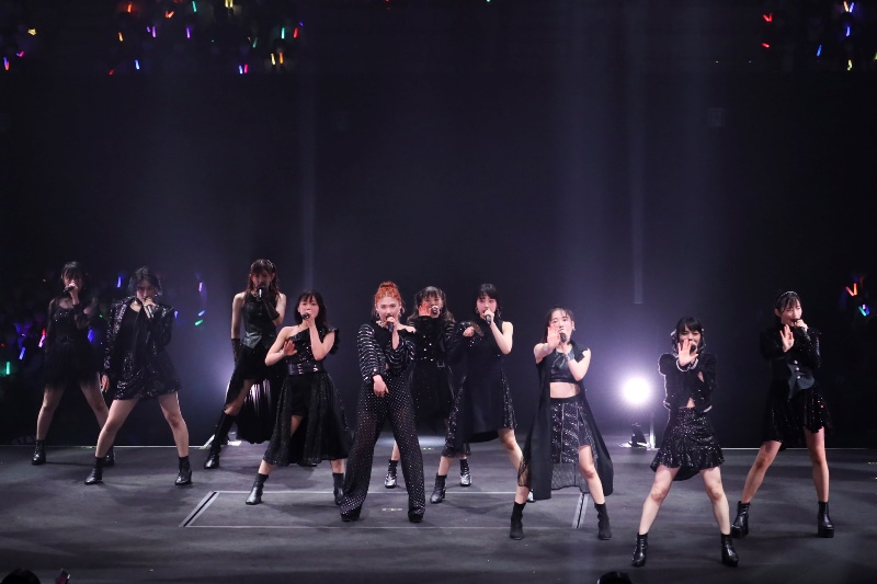 レーザー演出も交えたサイバー感たっぷりな演出でメンバーがセンターステージに現れ、ライブは最新トリプル A 面シングルより「愛・魔性」でスタート。得意の熱量高いラテンナンバーにのせ、それぞれが自信たっぷりに魅惑的な表情を届けてくる。