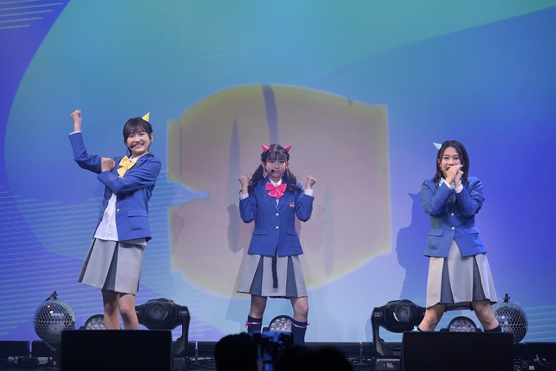 1曲目の『おにパパパン!パン!』では、テレビ東京系列「おはスタ」にて放送中のアニメの映像をバックに、鬼のツノをイメージしたかわいい“鬼ポーズ”で会場を盛り上げた。
