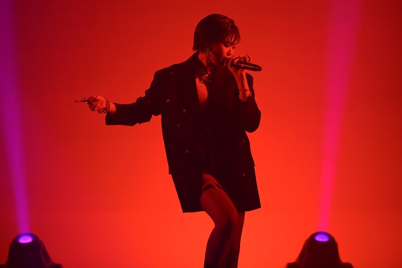 続いて登場したのは、TBS10月期ドラマ『君の花になる』で自身初のドラマ出演も控えているNOA。1曲目はR&B色の強い『TAXI feat. tofubeats』を披露し、甘い歌声と表情で観客の視線を掴むと、続く『LET GO (feat. JEON WOONG(AB6IX))』では1曲目とは違うダンスポップで雰囲気を一変させた。