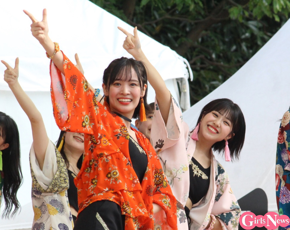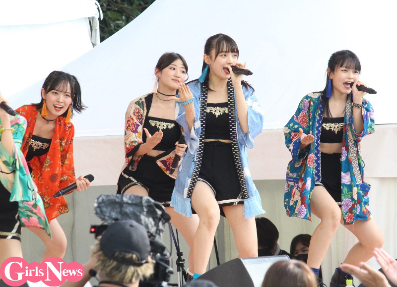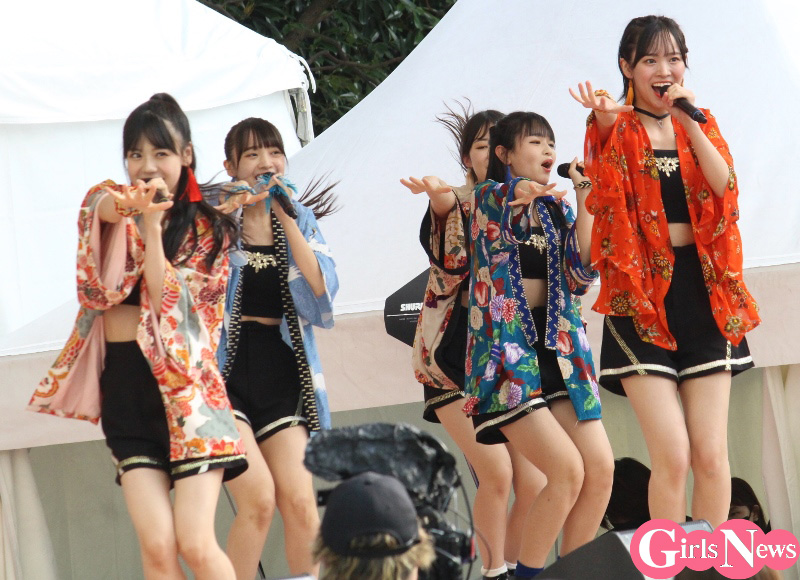 ライブでは、先月発売のメジャーデビューシングルより『お祭りデビューだぜ!』『恋のクラウチングスタート』のほか、モーニング娘。の『この地球の平和を本気で願ってるんだよ!』など先輩グループのカバーも含め、計5曲を披露。この回は夕方の4時台という酷暑の中でのステージとなったが、つめかけた観客にイキイキ溌溂と歌とダンスを届けた。