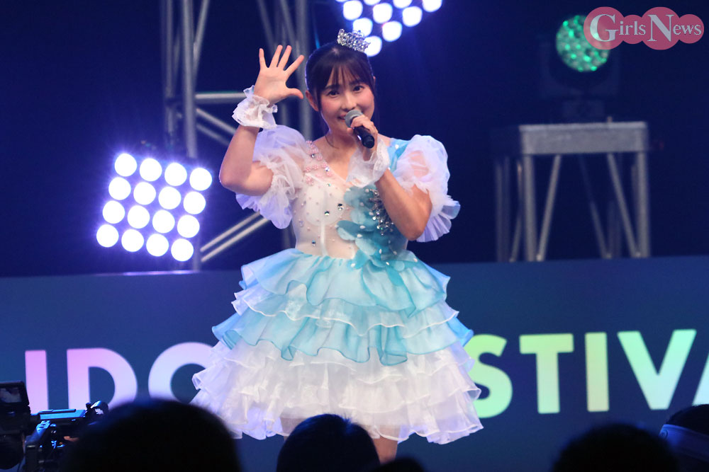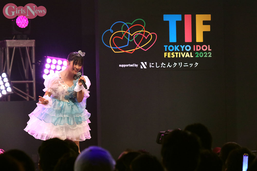 月島さんはSHOWROOMの企画「Road to TIF 2022 ラストチャンス」に参加。ファンの応援でこのステージに立つことが叶った。「6年前、アイドルを目指して上京してきて、TIFのステージはすごく憧れでした」と想いを打ち明け、自身が作詞した『春らりら』などを熱唱。客席で青いサイリウムを振るファンに応えて「私にとって一生の宝もののステージになりました」と感謝を伝えた。