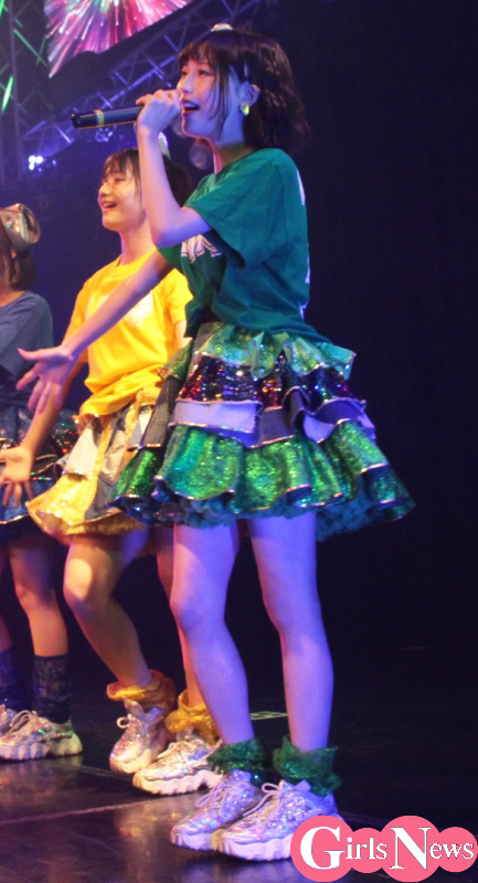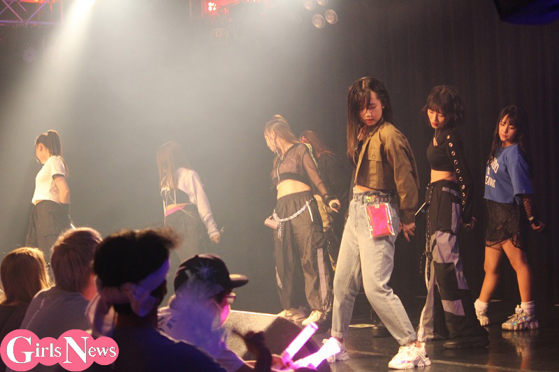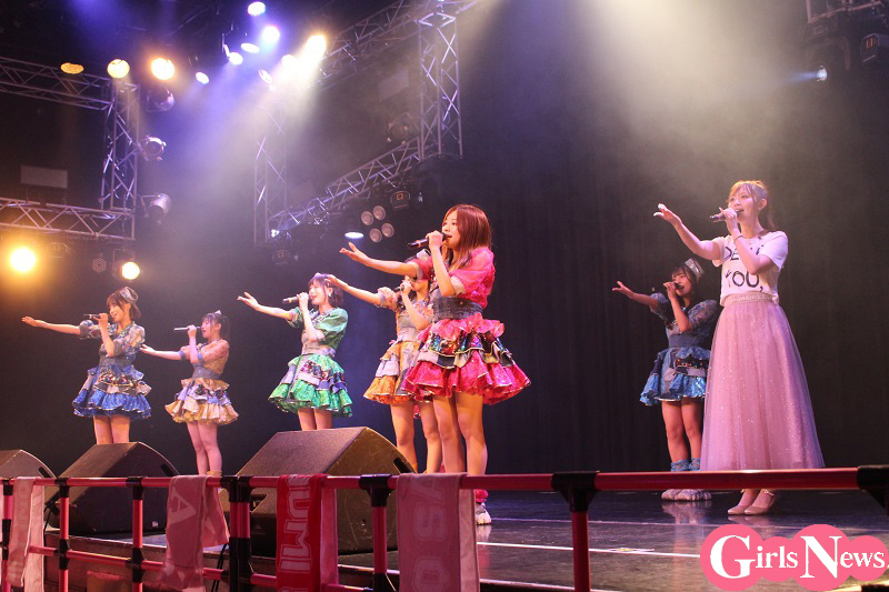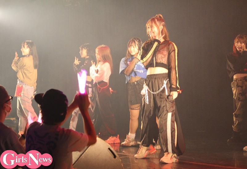 そんな中、さくらさんにとって東京ラストの公演は1曲目『RI・RI・RI』からスタート。メンバーたち自身もレアだと語る同曲、そのパンツスタイルの衣装に身をつつみハードなダンスとボーカルで魅せた。6人時代の2020年にリリースされた楽曲で、当時在籍していた吉川千愛さんのポジションや衣装は大空莉子さんが担当し6人で披露した。そしてメンバー全員登場で、定番のライブ盛り上がり曲の『ウェッサイ‼ ガッサイ‼』。場内は一気にヒートアップした。