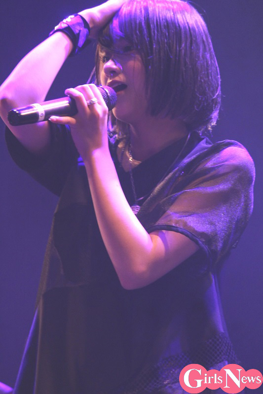 中盤は、さくらさんのソロステージ。彼女の今の思いを表したようなソロ曲『さくらとずっと』を、大切な宝物を抱きしめるように歌った。そして人気曲『WavyHug』をソロアレンジで披露。その後、メンバーたちが登場し、バラード曲『あの街の空』をしっとりと聴かせた。この曲は、さくらさんが初めてLinQのライブを観たときに聴いて感動したという思い入れの深い1曲。歌詞をかみしめるように歌う、さくらさんはじめとするメンバーたちだった。