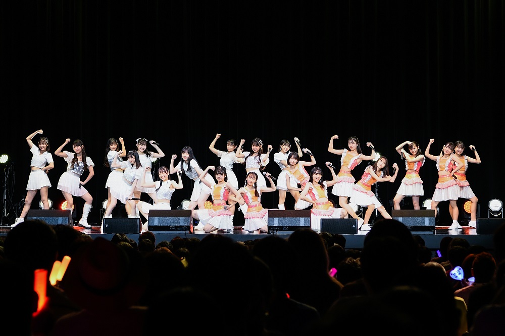 最後の MC を挟み、公演のラストを飾ったのは、参加メンバー全員でステージをめいっぱい使って歌い上げた『一尺玉でぶっ放せ!』。パワフルなパフォーマンスを繰り広げた19 人のメンバーは「ありがとうございました!」と元気よく感謝を伝え、観客の盛大な拍手を浴びながら笑顔でステージをあとにした。