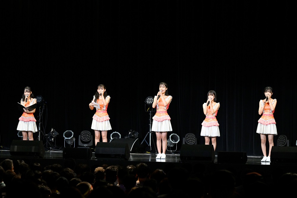 MC・まこと(シャ乱Q)の司会進行によるメンバー紹介を挟み、OCHA NORMA の10 人は、日本の伝統的な楽器の音色を取り入れたメジャーデビューシングル収録曲の『お祭りデビューだぜ!』で会場を盛り上げた。