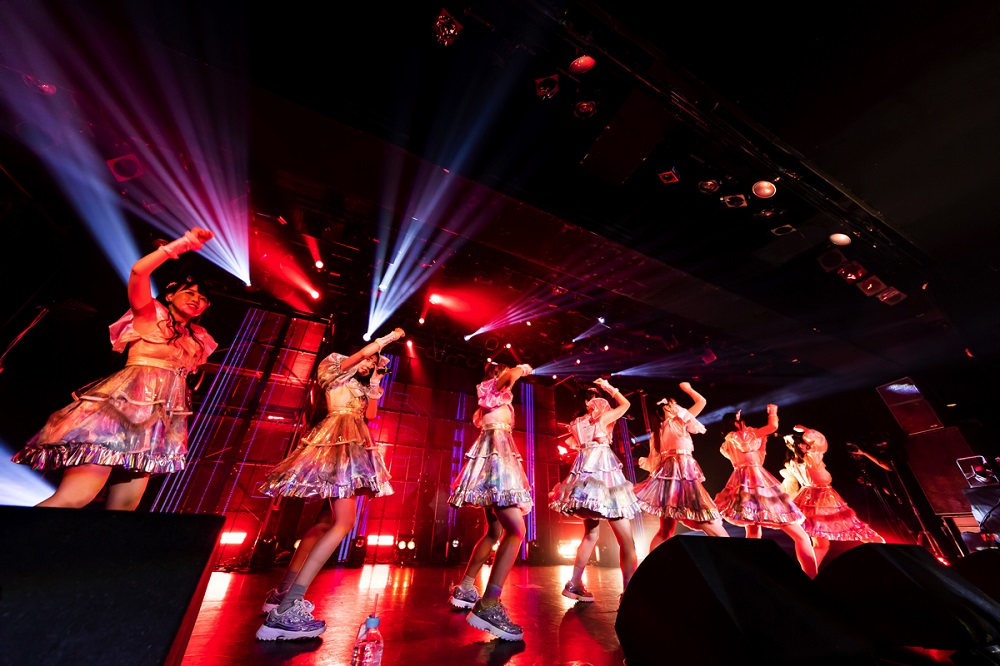 櫻井と仲川の、かつてアイドルとして経験した挫折を乗り越え、再びここに立っているという決意。月足と真中の「恩返し」の心。松本と早瀬の純粋な願い。そして鎮西の覚悟。彼女たちひとりひとりの思いの切実さが伝わってくる。クラップのリズムにあわせ、ステージに現れた7人。SEのEDMサウンドに合わせて舞い、円陣を組み、合わせた手を離すと、全員が花びらのように散っていき、笑顔を振りまいた。