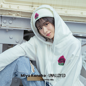 金子みゆのファンマークでもあるカップアイスクリームをモチーフに刺繡を施した完全オリジナル商品を60%(シックスティーパーセント)にて期間限定で販売。 購入者特典として全員に未公開オフショットを納めたポストカードをプレゼント。さらに、 金子みゆ × UNALLOYED コラボを記念しお渡し会の開催も決定。