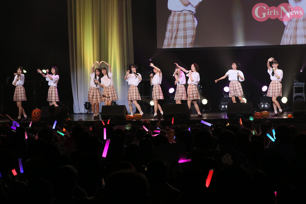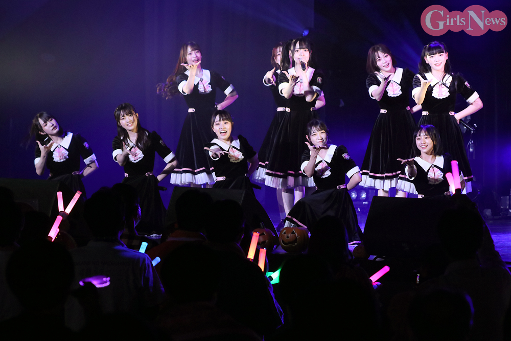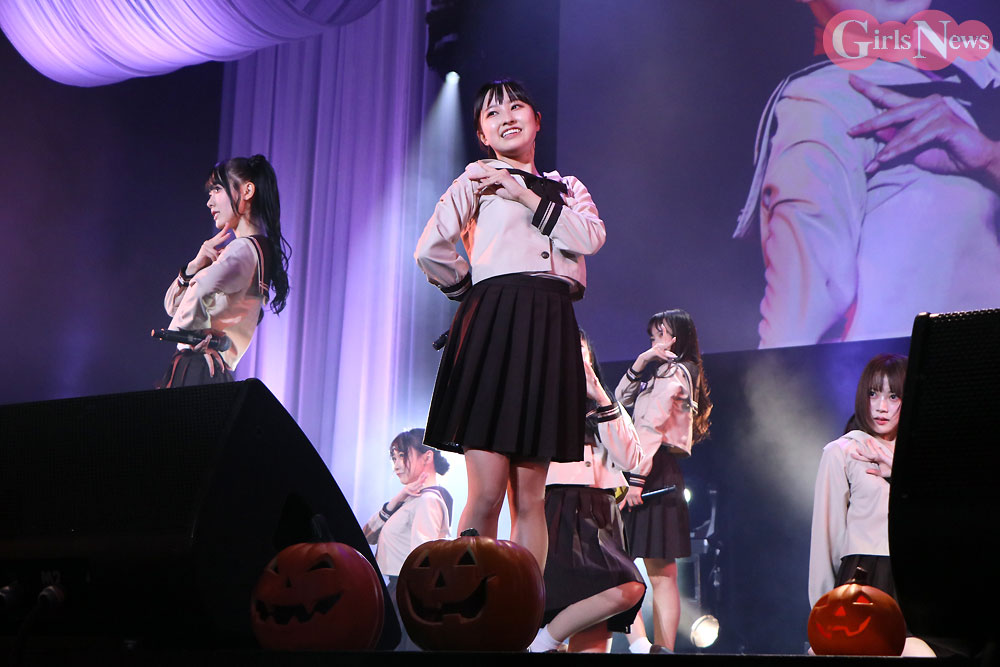 デビュー以来、初の本格的な単独イベントとあって、会場は期待を寄せるファンでほぼ満席となっていた。オープニングでは、いきなり客席の通路から次々と登場するメンバーにファンはビックリ。それぞれが選んだハロウィンのコスプレで可愛さやセクシーさをアピールした。