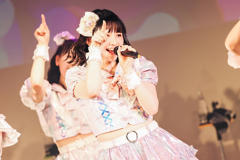 続いてのMCでは抽選コーナーとして、メンバー全員のチェキをプレゼントする企画も行われ、クジを引くメンバーの表情は普段のライブで魅せるものとは違い、メンバー間の関係性などがわかるような素の表情でファンを楽しませた。