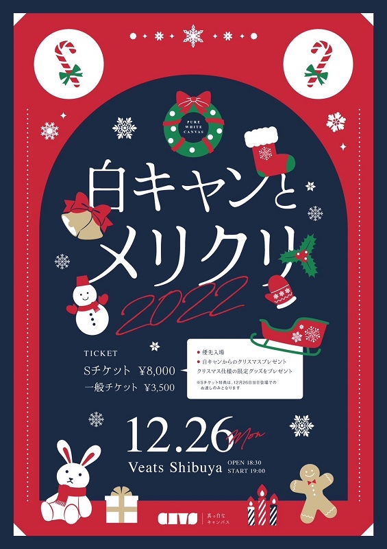 そして、12月26日(月) Veats Shibuyaで行うクリスマスイベント「白キャンとメリクリ」、Spotify O-WESTで行う年越しイベント「真っ白なキャンバス カウントダウンライブ2022→2023」の計3本のライブイベントだ。