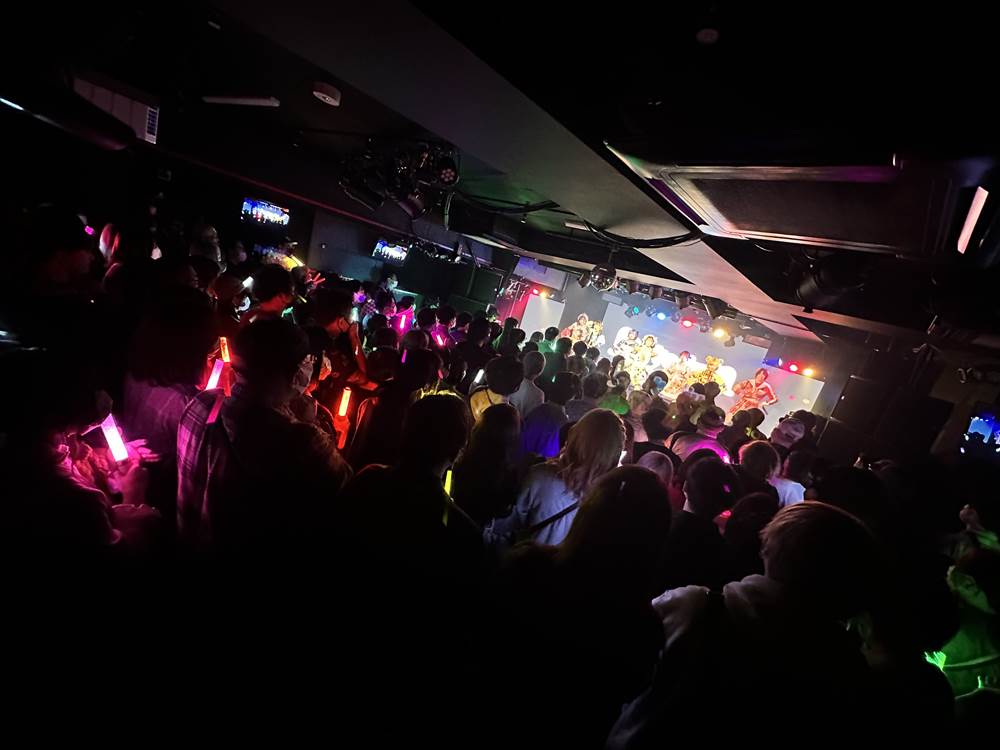 「ねぇあれしたいなあ」とみんなで歌いだした『ねぇ○○したいな?とはいえすごいかわいいな?』では、メンバーらの煽る声に合わせ、フロアのあちこちで拳や色とりどりのサイリウムが突き上がる。キラキラとしたアッパーなロックチューンに刺激を受け、身体が熱く騒ぎだす。