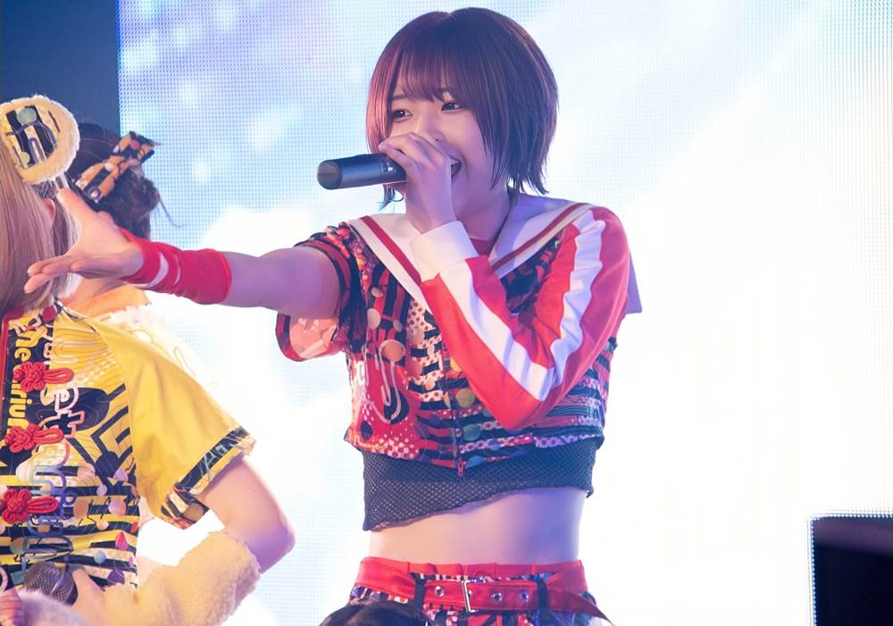 続く『ねぇ○○したいな?とはいえすごいかわいいな?』でもアッパーなロックスタイルを魅力に、観客たちをアゲアゲにしようと熱く煽りだす。映像/視覚効果を活かせる原宿RUIDOという舞台環境も上手く利用し、7人を際立てる映像も投影。とても華やかでノリ良いライブ姿を通し、見ている人たちの身体を揺らしていった。もちろん、その姿を目に焼きつけようと凝視する人たちもいる。でも、フロアのあちこちでサイリウムの輝きが揺れていたように、つい身体を動かしたくなる楽曲なのが嬉しい。