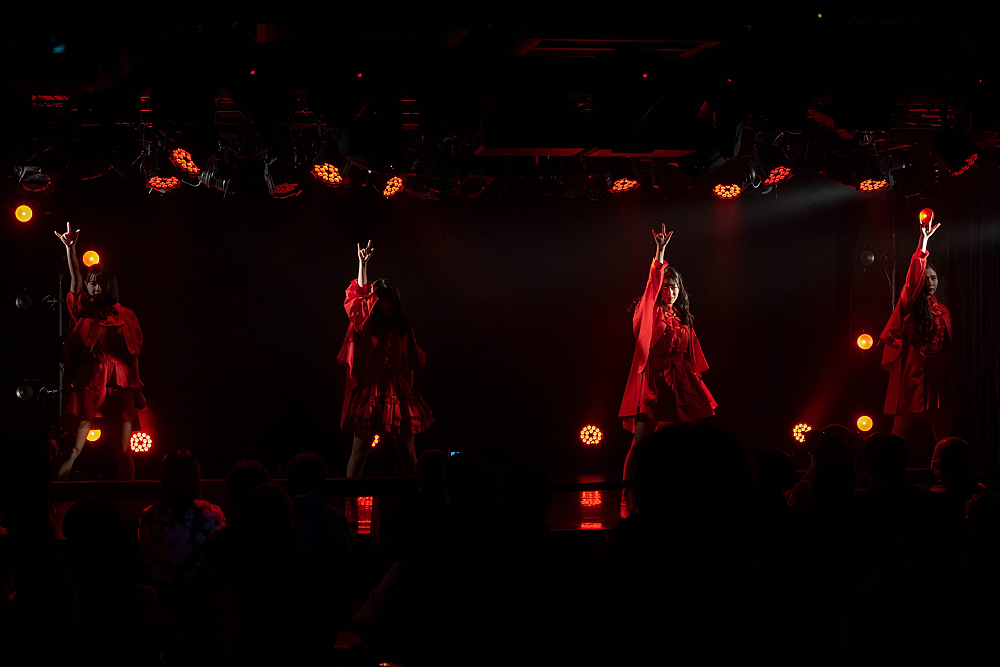 3幕目は力強いサウンドとともに赤い衣装に身を包んだメンバー4人が登場し、今年5月にリリースされた「キミは太陽」の前向きな歌詞と可愛くキャッチーな振り付けからスタート。