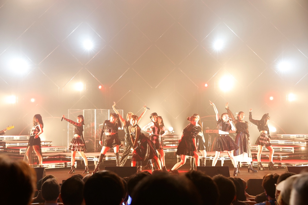 2枚目のアルバム『2nd STEP』に収録されている『マサユメ』でライブはスタート。白い幕が下りると、ステージの上にはロックスタイルの衣装を着たメンバーが登場し、会場のボルテージは一気に上昇。メンバーがロックスタイルの衣装を着た写真を前日にブログでアップするなど、匂わせ(!?)的な告知はしていたものの、サプライズとなった生バンドを引っさげたライブ演出に、ファンからは大きな拍手が巻き起こる。