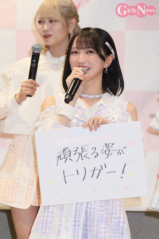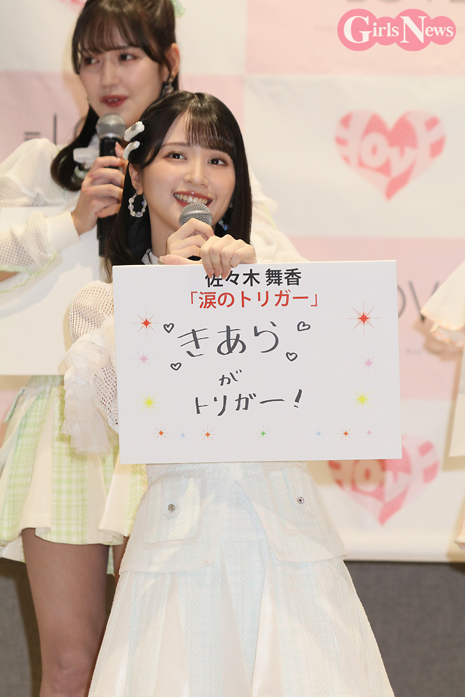 会見では、表題曲のタイトルにちなんで、メンバーが涙、怒り、喜びなどさまざまなテーマに沿って“感情が爆発してしまうトリガー”をボードで発表した。