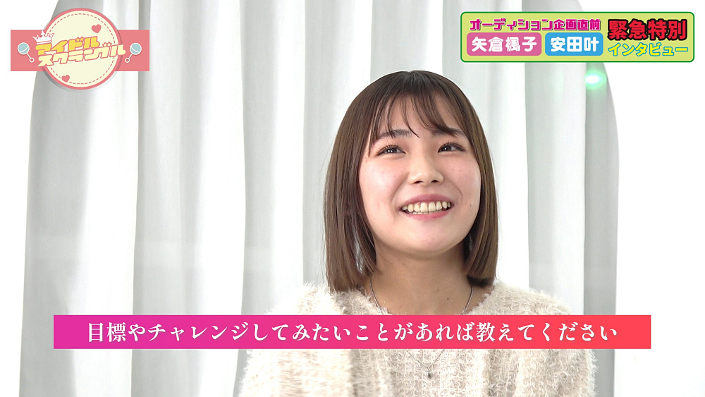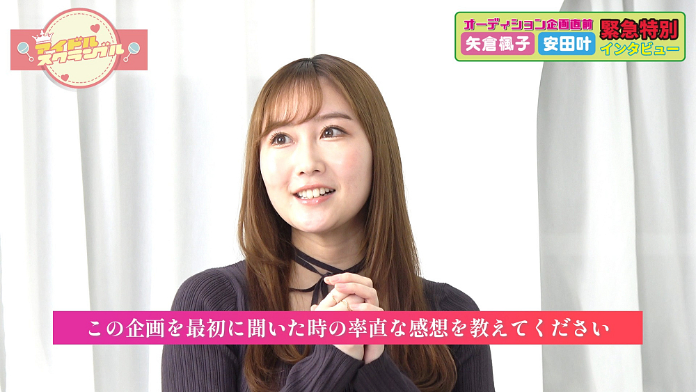 番組「IDOL SCRAMBLE」では、オーディション企画を前にした矢倉楓子と安田叶への、緊急特別インタビューの模様をお届け。