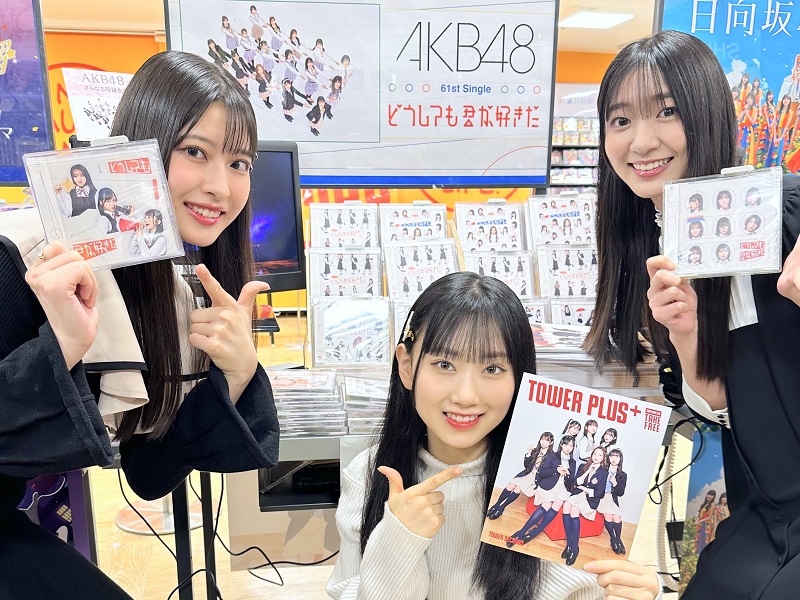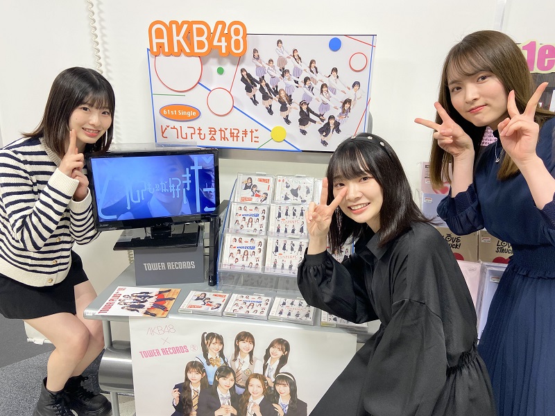 AKB48が26日、61 枚⽬となるシングル『どうしても君が好きだ』を発売。それを記念して、AKB48 劇場では約 14 年ぶりとなる CD お渡し会を開催。⾸都圏近郊 6 店舗の CD ショップでも同様のお渡し会を実施した。また、選抜メンバー16 名は渋⾕ 2 店舗の CD ショップに登場し「⼀⽇店員」を務めた。19 時 30 分からは 選抜メンバーと 61st シングルのカップリング曲センターが劇場に集まり、⽣配信を実施。配信内ではオリコンデイリーシングルランキング 1 位獲得の速報をファンと⼀緒にお祝いし、最後は選抜メンバーによる『どうしても君が好きだ』の⽣パフォーマンスで記念配信のフィナーレを飾った。
