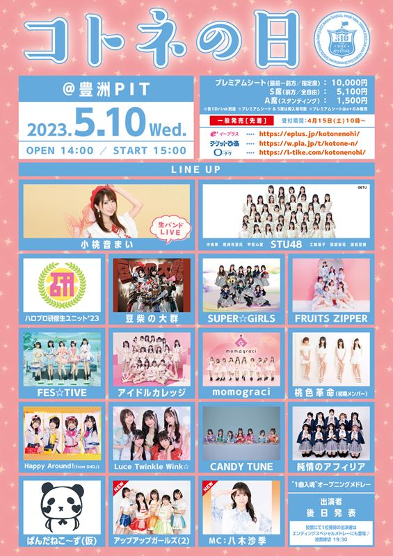 5月10日に豊洲PITにて開催される小桃音まい主催のアイドルイベント「コトネの日」に出演する最終キャストが28日に発表された。