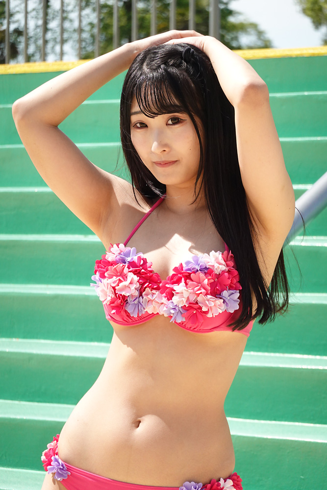 名古屋を拠点に活動するアイドルグループ「グランダルメ」の藤田芽愛さんが29日、埼玉・しらこばと水上公園で開催された「近代麻雀水着祭2023」に出演した。