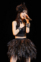 続いて、℃-ute「悲しきヘブン」を歌い上げた川嶋は、黒を基調としたノースリーブのシックなスタイルでパフォーマンス。衣装のポイントであるアクセサリーについて「舞台に立つと両手のキラキラ