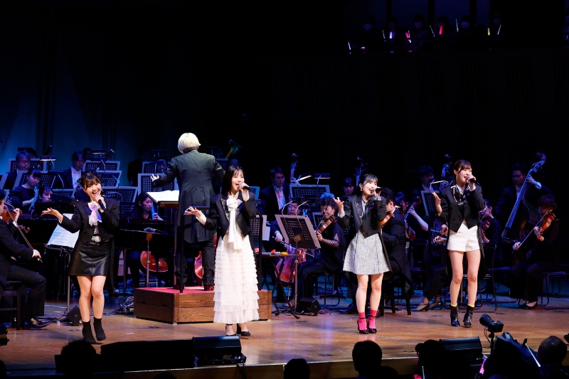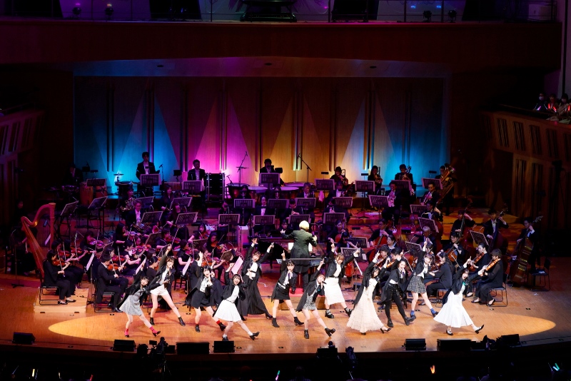 ここから再びライブコーナーへ。4 月 12 日発売の新曲『夢さえ描けない夜空には』と、19世紀を代表する作曲家の一人であるショパンの「英雄ポロネーズ」を軸にした『英雄〜笑って!ショパン先輩〜』を披露。なかでも『英雄〜』は、今春に音楽大学を卒業したばかりの小林萌花のピアノソロでスタートする楽曲。小林萌花のピアノ演奏とオーケストラの夢の共演に、観客席のファンも真剣な眼差しでステージ上に見入っていた。