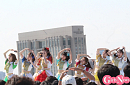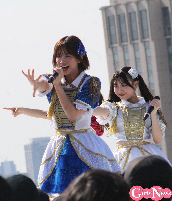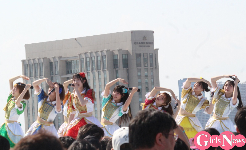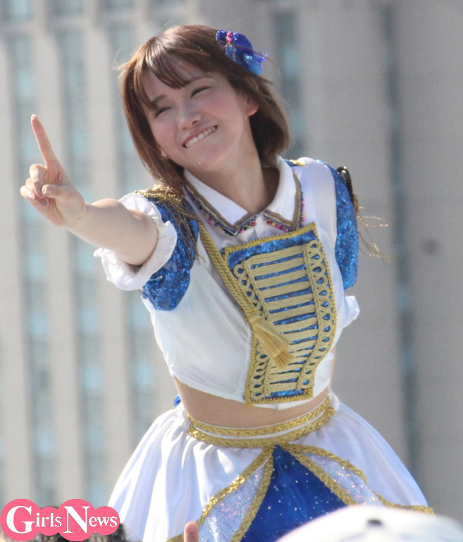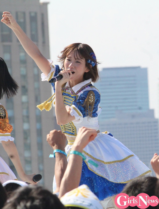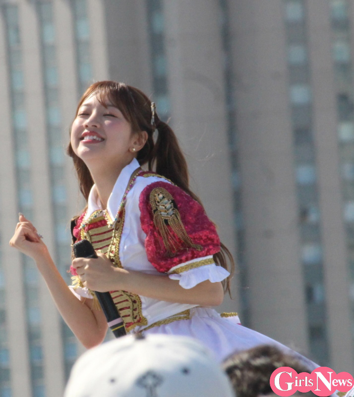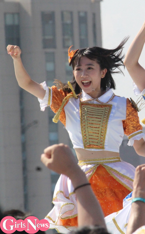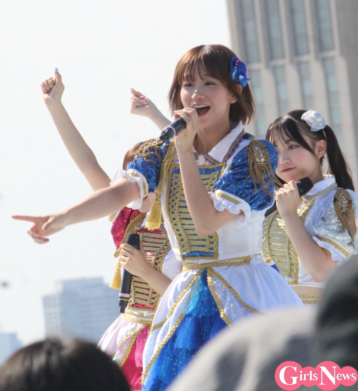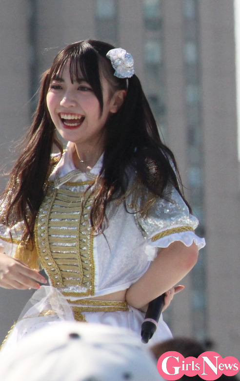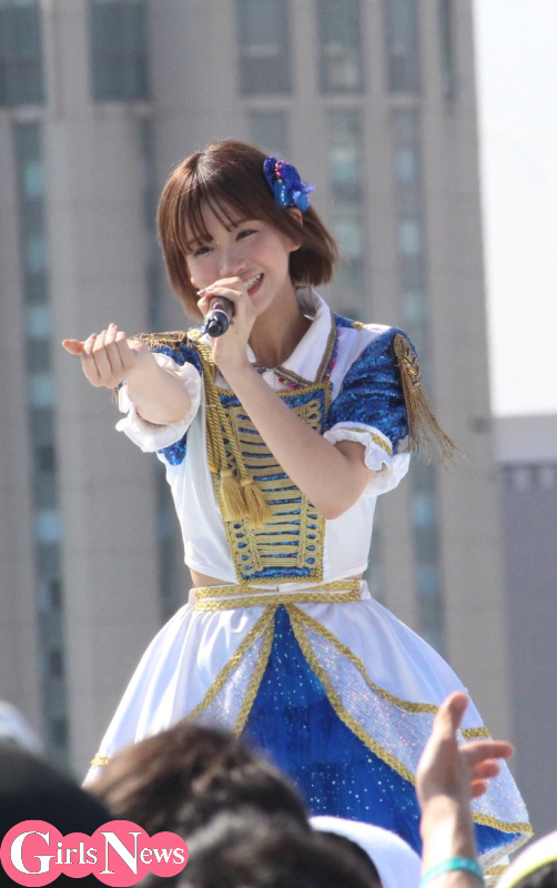 ライブは、青空の下にふさわしい元気でさわやかな『ナツコイ』からスタート。そして『ハレハレ☆パレード』でステージいっぱいを使って弾けるステージを見せた。金子さんも満面の笑顔で歌とダンスを見せた。