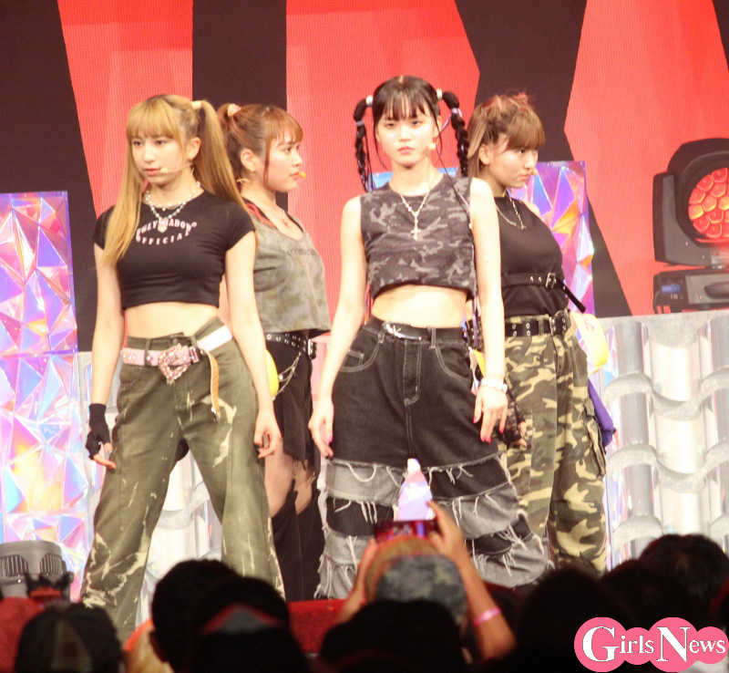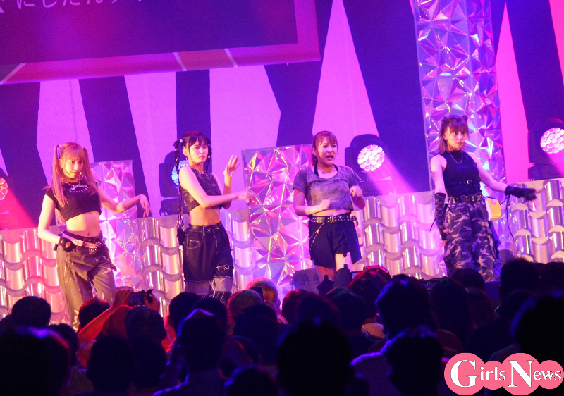MCでは「@onefiveを今日初めて観た人~?」の問いかけに常連さんが多数手を挙げる、お決まり(?)のやりとりがあったり、ほっこりとしたムード。この日は大気が不安定で急に大雨が降った時間もあったが、「雨宿りでライブを観に入ったら、こんなにかっこいいステージが観れるなんてみなさんラッキーですね」と語りかけると、「同意」と言わんばかりの拍手や歓声につつまれていた。そして3曲目に、23日発売のニューシングルより表題曲の『Justice Day』をTIFのステージでは初披露。これまでの@onefiveの楽曲とは雰囲気が異なる、低く重いビートの効いたサウンドに乗せたダンスと、大人っぽいボーカルで、彼女たちのクールなカッコよさを堪能できるパフォーマンスを見せた。