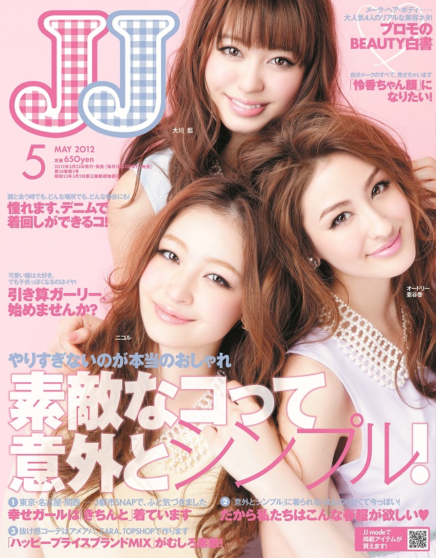 3月23日(金)に発売された「JJ」5月号で人気モデルのオードリー亜谷香・ニコルと共に大川藍さんの3人が表紙を飾っている。