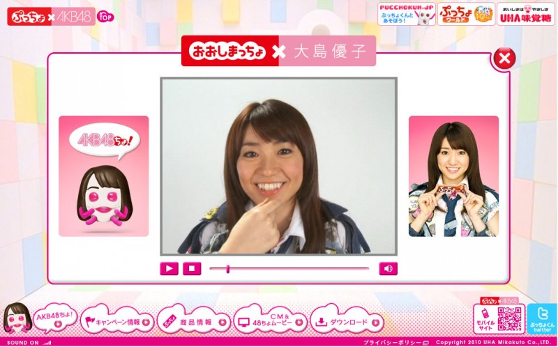 この日は、大島優子・前田敦子・高橋みなみ・小嶋陽菜・板野友美・宮澤佐江・渡辺麻友・河西智美・松井珠理奈・松井玲奈の10人が新CM発表会に参加。CMは、ぷっちょを食べるとぷっちょ化し「AKB48ちょ」に変身する内容になっているそうだ。大島優子ちゃんは「キャラクターが本当に似ていてかわいくて、動きのぎこちなさがたまらない。」とコメント。また、センターポジションを務めるようになって「慣れてはないです。」と遠慮ぎみにコメントした。