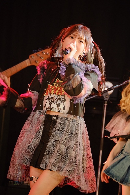 そんな中、松田が切り出す。「みなさん、次の曲なんですけど、私たち「メロメロ!ラヴロック」リリースするじゃないですか。そのカップリング曲を、今日初めて披露しちゃいます! 意外と思うかもしれません。アンニュイな感じの私たちを楽しんでください」と、本日が初披露となる「セラセラヴィ。」を披露。メドレーのときの雰囲気とは180度変わり、艶やかなで少し余裕を持ったお姉さんの雰囲気を持ったメンバーたちが、お洒落でゆったりとした空気感を演出する。疲労する足腰に癒やしのサウンドが吸収されていくような感覚に陥る。