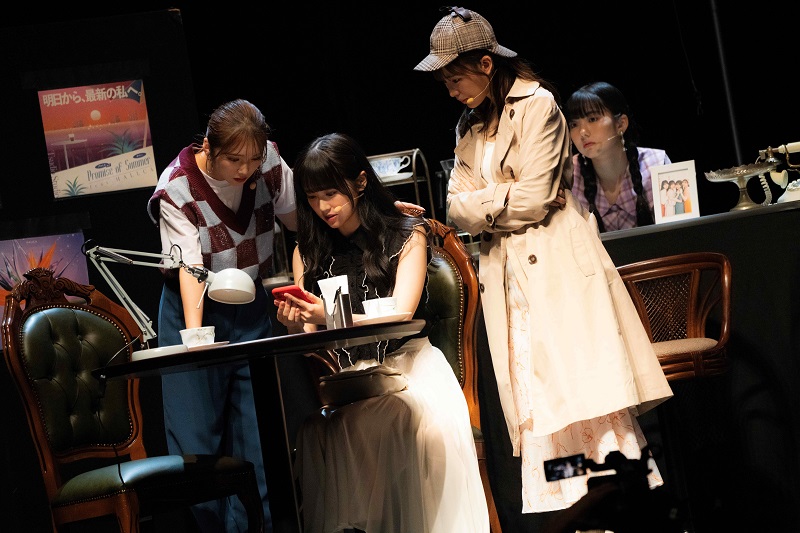 第2部では、冒頭に、この舞台のために韓国人プロデューサー兼DJのNight Tempoが書き下ろした『Make a Wish』を披露。普段はそれぞれのグループで活動している4人だからこそ、歌唱やダンス、魅せ方にそれぞれの個性が光るパフォーマンスを行った。その後は、演劇パートの80年代設定を引き継ぎ、80年代のアイドルソングをソロ歌唱で次々とカバー。運上弘菜による『青い珊瑚礁』や石田千穂による工藤静香の『MUGO・ん…色っぽい』などを披露し、観客をわかせた。