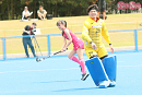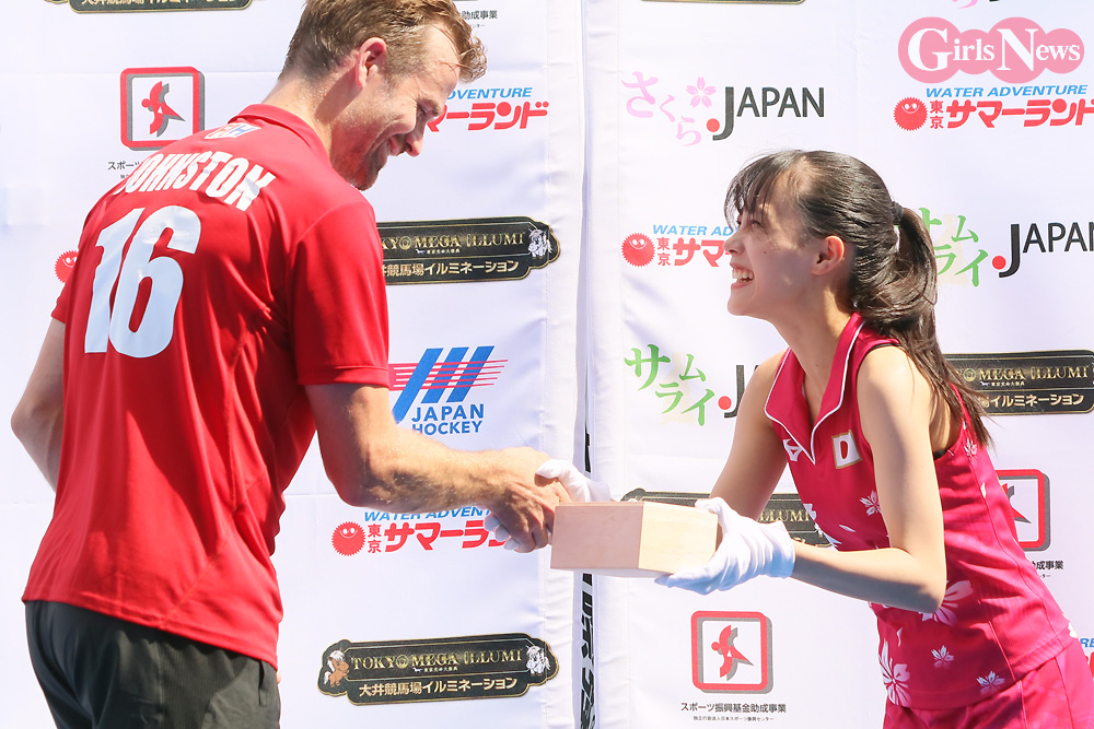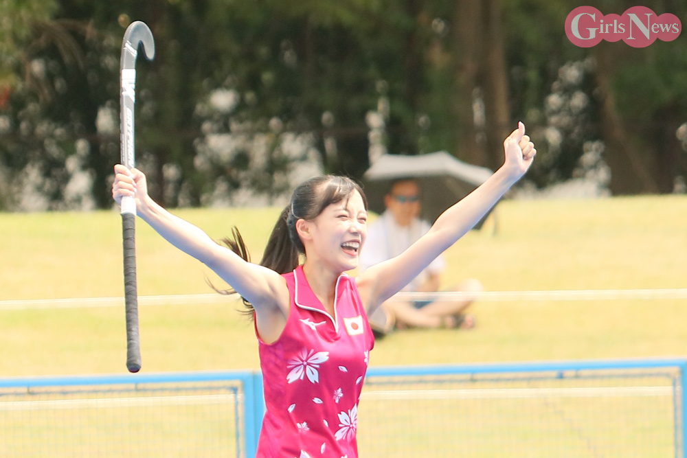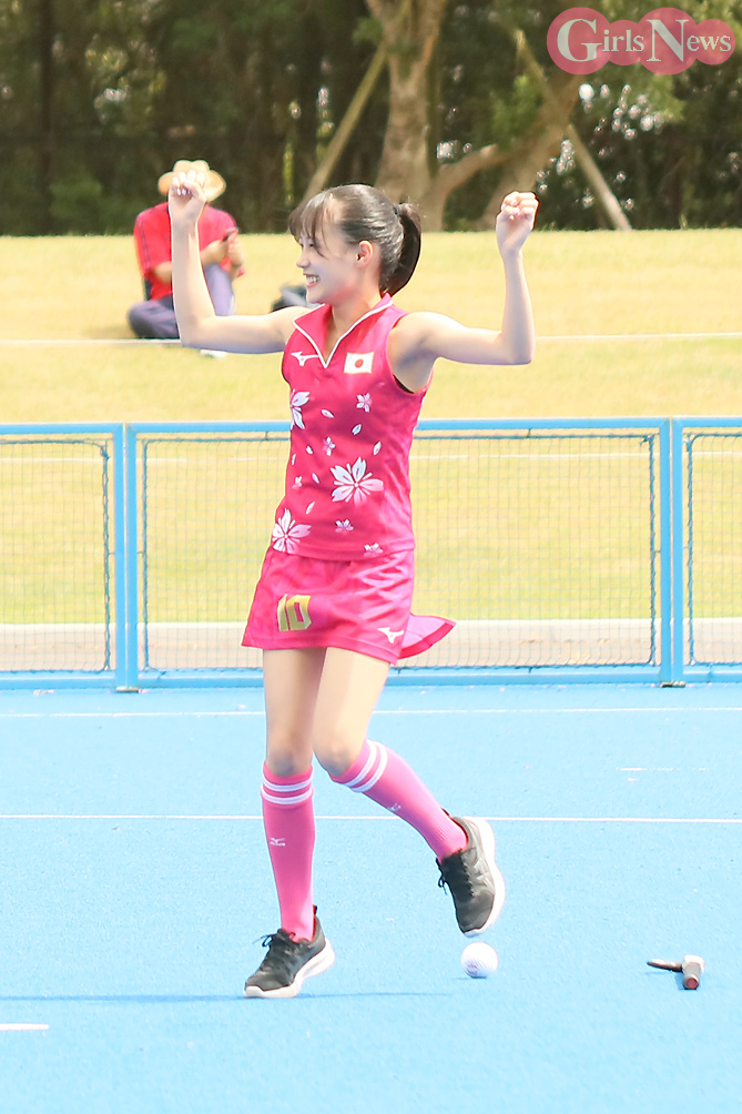 日本ホッケー協会設立100周年を記念する今年、ホッケーアンバサダーに就任した河西さんは、第1試合「日本代表vsカナダ代表(男子)」の始球式に、さくらジャパンのユニフォームで登場。パスを受けて一気に攻め込むと思いきや、ゴール前でまさかのダンスを披露する余裕ぶりをみせた。気を取り直して今度は華麗にシュートを決めると、爽やかな笑顔でピッチを駆け抜けた。