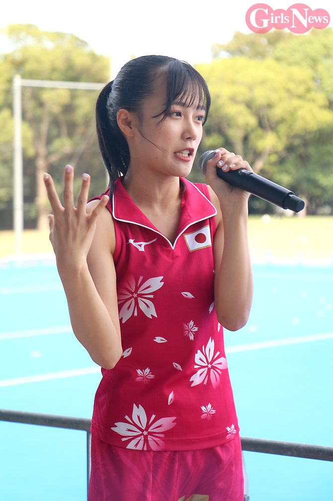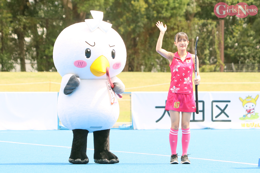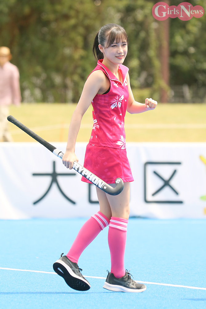 つばきファクトリーの河西結心が3日、東京・大井ホッケー競技場メインピッチにて開催の『日本ホッケー協会設立100周年記念 ホッケー日本代表国際強化マッチ』の始球式に出演した。